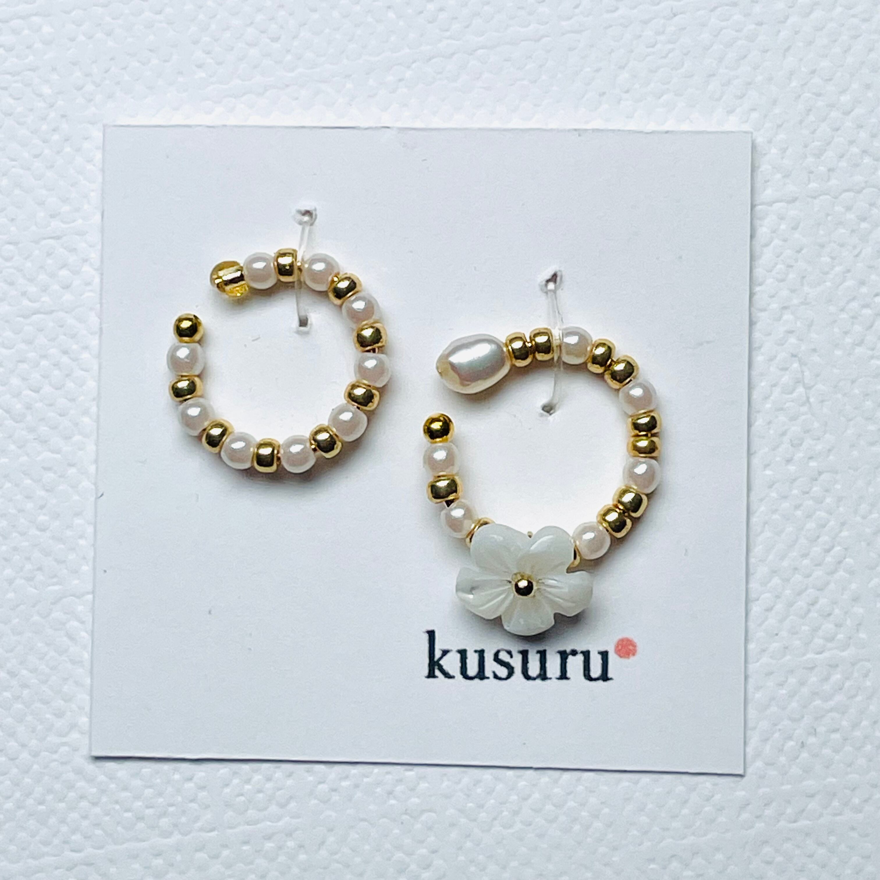 《kusuru シードビーズ シェルフラワー イヤカフセット》