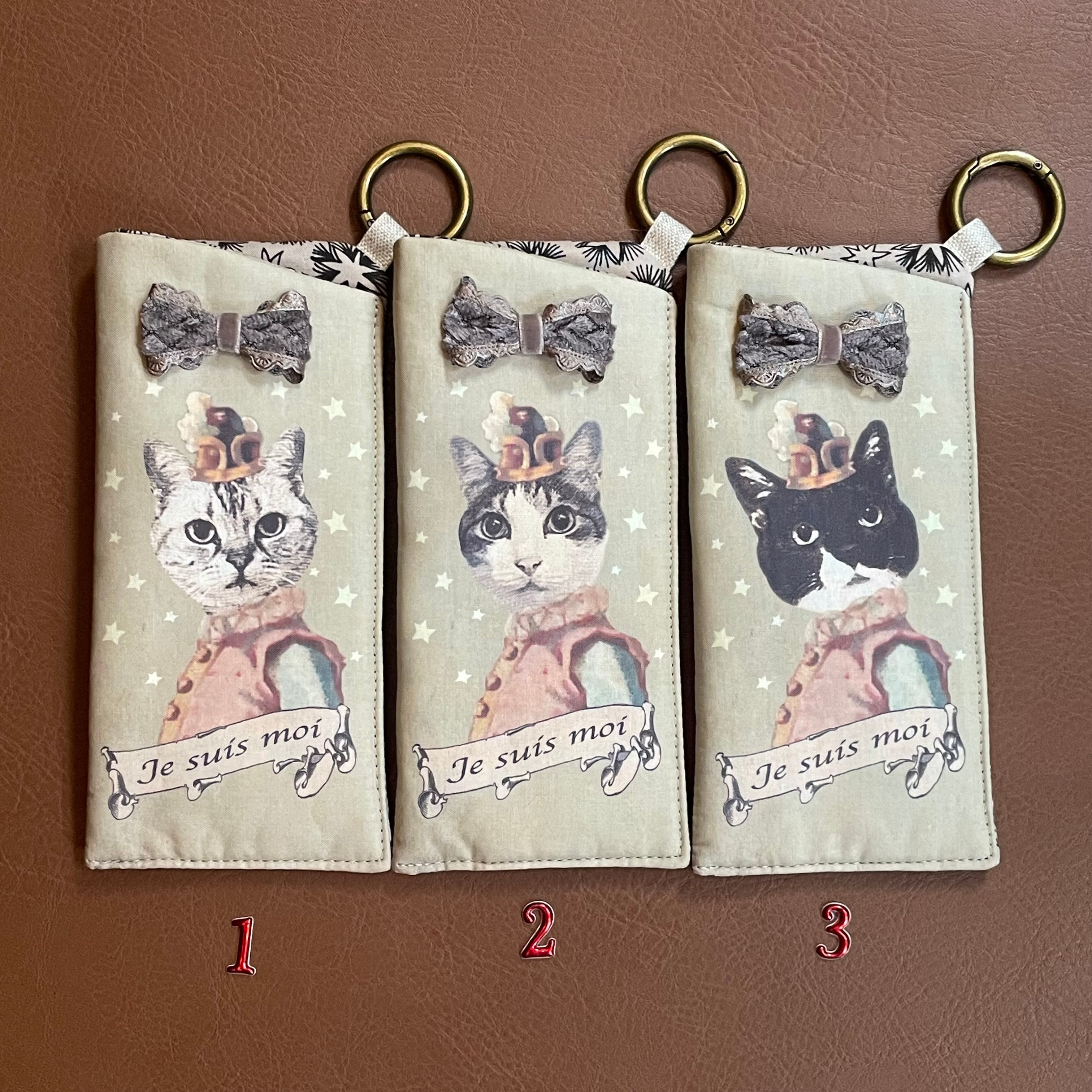 3匹の猫の布雑貨を制作している